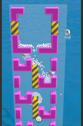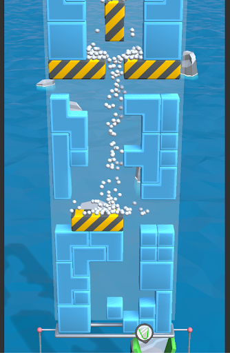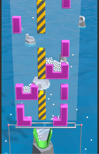 Clear the blocks in a way so that enough balls get into the bucket. But be careful about not losing balls by removing the wrong blocks or the balls may fall into the depth of sea. Try to fill the bucket to the full without losing any ball to the unforgiving sea!
