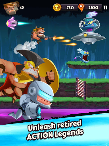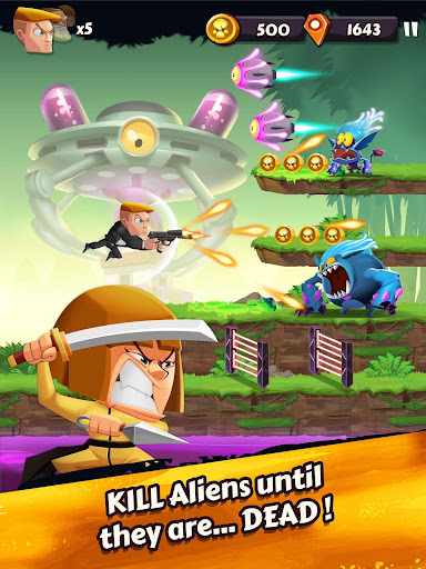 - Run and gun your way through treacherous obstacles and endless hordes of aliens that you must kill to collect Medals.