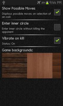 The tokens travel anti-clockwise in outer squares, clockwise in inner squares and finally lands up in Central Square (home). If a player’s token lands on a square occupied by opponent’s token, then the opponent’s token is "killed" and the player gets an extra turn to play. The killed token return to its starting home square and has to go round all over again. In crossed boxes, killing is not possible. When a token reaches the square left of its home square, it further moves up into the inner squares and now moves in clockwise direction. However the tokens enter the inner squares, only when at least one of the opponent's tokens are killed. Otherwise they keep circling around until at least one of the tokens of opponent is killed by them. Every token need not kill an opponent. If a player has cut once, all the coins can move into the inner circle. Each token finishes its race when it manages to get into the home. The first player to get all his tokens into home wins the game.