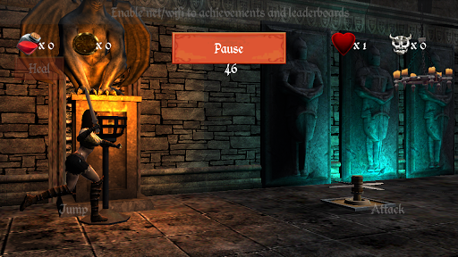 The controls are simple: left tap is the jump (to avoid traps), the right tap is swing with the weapon (against enemies and open chests).