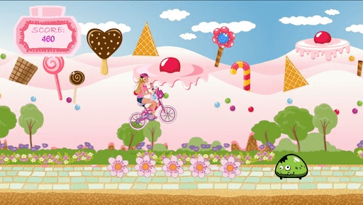 Barbie Bike Ride Barbie bike pack. Jumping over the monsters, collect the flowers. Collect all the flowers to make the maximum score.