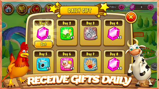 - Cute pets on your animal farm such as cows, chickens, pigs, a hen and a rooster.