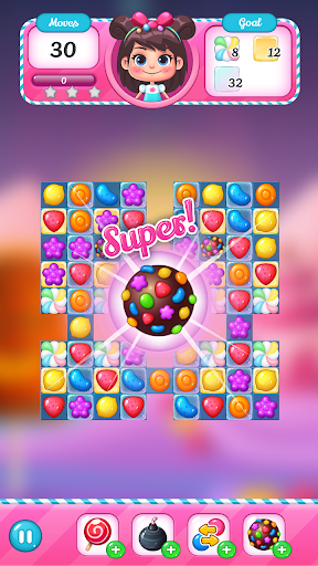 Are you excited to play candy game? Crush by matching candies have a sweet burst just like you are having candies or cakes or cookie. Dive into the divine saga of candies and different flavors. Match more than three and get different type of powers.