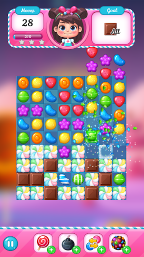 Gameplay is simple yet indulging and entertaining. You will have to match candies of same type minimum of three to pop and blast them. Crush the maximum candies and get different types of powers in the form of chocolate game. Get into the candy craze dive into having yummy juicy sweet candies just like you are in like you are in land of candy. Match candies after matching have cake or cookie and think yourself as you are in a chocolate factory.