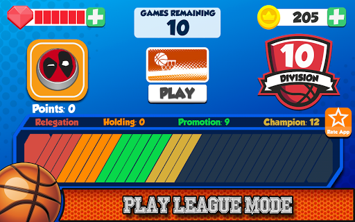 - League: Ascend in the basketball caps league until you reach the first division and be the champion
