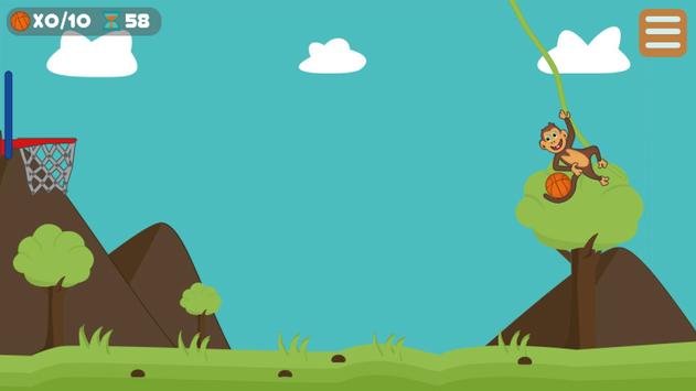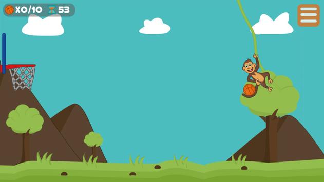 The monkey Shoots basketball when climbs a tree in the jungle and he is swinging when shooting the basketball which makes the game very funny to play.