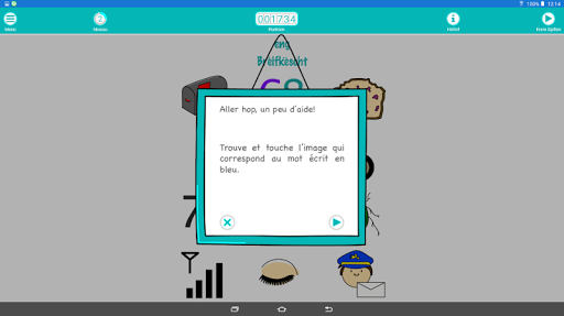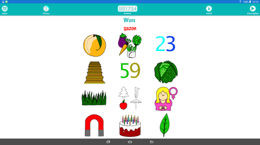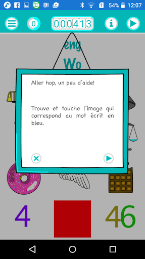 If I click on the good picture, I get 5 points. If I make a mistake, I get less points. I can ask for help by clicking on time on the word in Luxembourgish. Then I can see the translation in french or in english (*). If I click 2 times on the word in Luxembourgish, the screen displays the good picture.