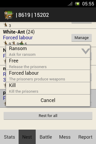 • Use Special Units for parasitize the enemy nests, create havoc, make guerrilla, kidnap the enemy worker ants.