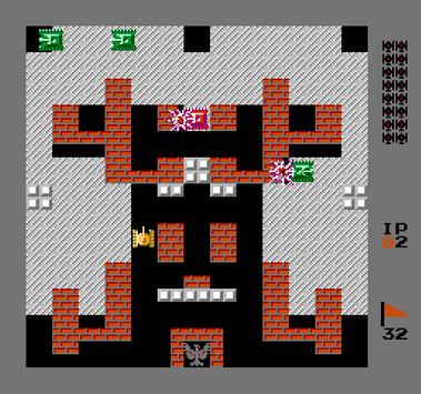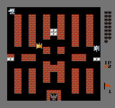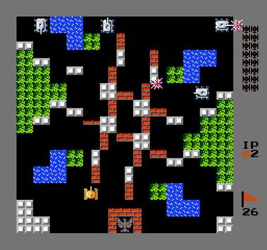 The player, controlling a Tank, must destroy enemy tanks in each level, which enter the playfield from the top of the screen. The enemy tanks attempt to destroy the player's base (represented on the map as a bird, eagle, or Phoenix), as well as the human tank itself. A level is completed when the player destroys all 20 enemy tanks, but the game ends if the player's base is destroyed or the player loses all available lives.