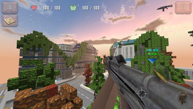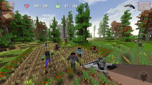Selecting the main character, you will find yourself in a terrible pixel forest Battle Craft Z. Now the life of the survivor is in your hands, watch his health, hunger. Create helpers and give them a handicraft: agriculture, cattle breeding. All day at your disposal. Explore each block in the forest, find a chest with vital resources. Grow wheat and other vegetables. Breed the sheep, pigs and chickens. Hunt for wild animals. Examine the abandoned cars and corpses of ghouls, here you will find fuel, first-aid kit and lots of weapons: automatic, pistol, bat and much more. Collect blocks for crafting arrows and ammunition. Arrange the traps around the farm and upgrade the fence. Your home is your "fortress", this is the only place where you are safe.
