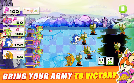 Lead your units to the final victory. You have a tons a different soldiers available in your army: Dragons, Unicorns, tigers, wolves, octopus cats, brain genius, ninja foxes, armadillos, tnt moles, Fire mooses, Magnetics raccoons, Gold seeker raccoons, wolves with gold teeth, The incredible hedgehogs, Cyborg dragons, Rainbow Unicorns, Baby tigers, Sea Dragons, stinking skunks, Punkcupine, Foxes with umbrellas, hedgehog soldiers and doggycopters.