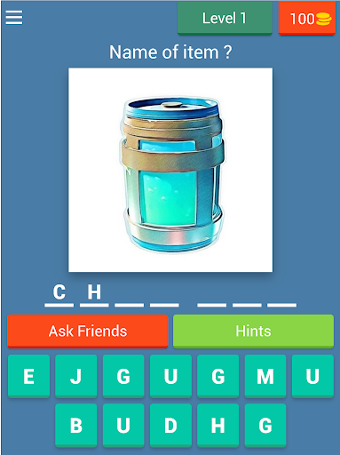 * Guess the name of the gun, item, skin, pets, area, weapon that were introduce in chapter 1 by tipping different letters.
