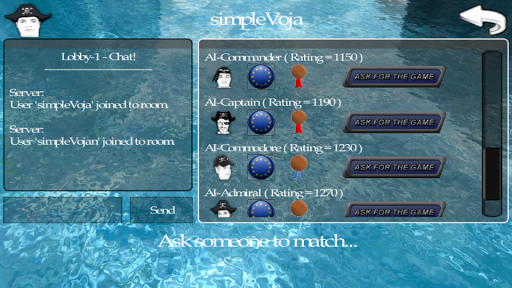 1) Single game - training or challenge match - your opponent is one of our navy pirates with an artificial intelligence. All navy pirate ship is painted with the pirate flag.