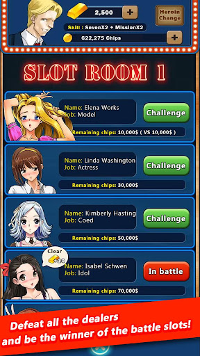 ▶ Defeat all the dealers and be the winner of the SLOTS battle game!