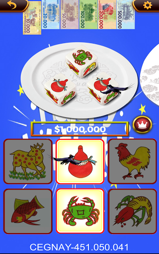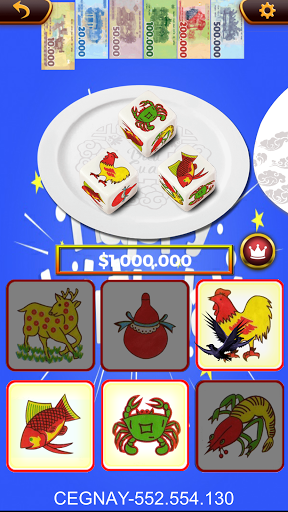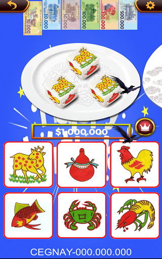 Wie man das Spiel ist einfach: Mit wie man ein ähnliches Spiel spielt XOC-Dia, Spieler wählen 1 von 6 glücklichen Maskottchen BAU, CRAB, TOM, CA, GA, Huou, dann schockieren und mit vielen verschiedenen Wetten wetten. Der Spieler gewinnt, wenn XOC-Dia korrekt in der Box mit demselben Bild.