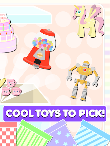 Pick a toy, then design the present box to put your toy surprise in. From the color to the paper wrapper pattern, it can all be customized.