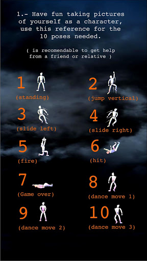 Have fun with friends taking pictures of yourself in10 different poses, edit your pictures in a design software to remove the background, upload 10 png files to the Game Upload Feature and Be The Player,