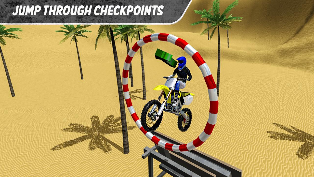 addictive game your mission ride your trail bike on beach, in beach track you can face difficult hard track and ride heavy bike on woody bridge and perform daring stunts. ride bike on beach cross all given loop shape check points in specific time, get three stars for better ride and collect points to easily unlock the next exciting challenging levels and other powerful stunt bike. Each level is more challenging and exciting than the previous level. You have played many stunt bike games and all the games are very good on the stunt concept of bike but this game will give you different feel.