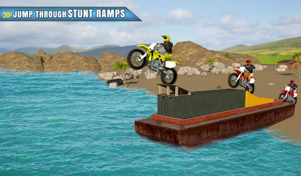 It’s time to become real motor bike stunt rider and ride fast bike on beach and in water. This transformer bike rides on sea water like a real jet ski and speed boat. Overcome obstacles and prove your sports bike surfer and extreme stunt rider skills. Race, surf and crash into crazy bikers as you pass through checkpoints and cross the finish line. Perform mid air jumps over ramps and do mad stunts on sports bike in this unique beach sports. Take control of the dirt bike to experience water surfer bike race challenge. The tyres of heavy bike get transformed into floating tyre once you jump into ocean. Ride fast and be furious in this amazing motocross stunt madness.