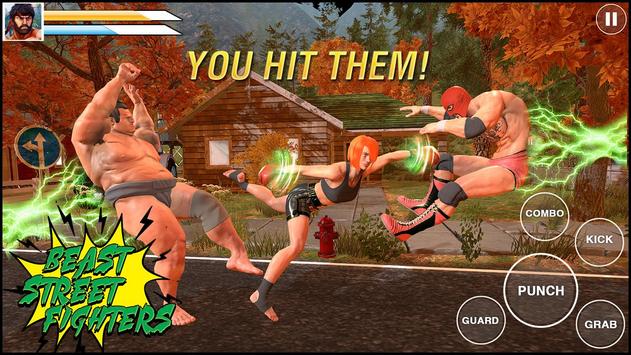 Beasts Street Fighters is an amazing fighting game where you have to be one of the powerful street fighters who can kill and fight beasts and monsters. You will use various attack techniques involving punching, catching, dodging, kicking and throwing. You will smash hard across the beast face and knock it down. You have to keep your rage on, because it is a ruthless battle of survival against the beasts. As you will move to the next stages, new fighting missions will be unlocked where you are given weapons but you will fight multiple terrible beasts who are very dangerous. You will pick up the weapon and strike the beasts. In addition to this you are provided with powers to increase Health, Super Punch power and you can learn a new weapon technique to defeat beasts. You can use the fighting styles of best martial arts masters. You should choose the fighting style in which you can defeat the beast. You will have endless combat with beasts in this fighting game and best action game.