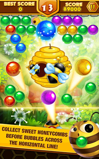 Swap and match three or more bubbles to gain points. Collect sweet honeycombs before bubbles across the horizontal line!