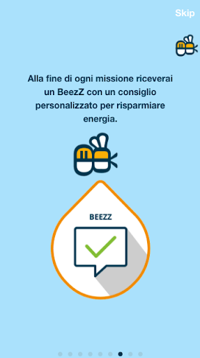 Playing an original game arranged in missions, you provide information needed for defining your home's features, about energy consumption and about photovoltaic production, and receive points called "Honey Point", tips&tricks to save on your bill (Beezz) and notifications about your Beeta Class.