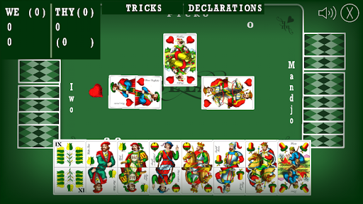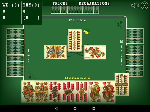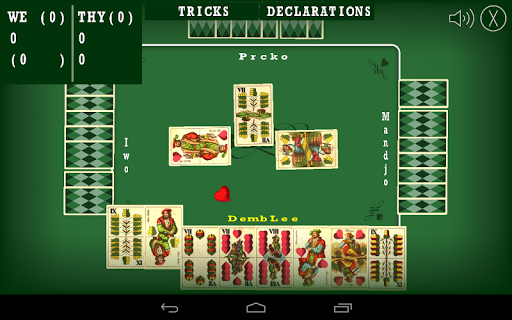 Bela (or Belot), a simulation of popular card game. Game is played with 32 hungary styled cards. This card game is mostly played on Balkans, and maybe some other parts of the world. You are playing a four player game, where your team plays against team of (so called) artificial intelligence players.