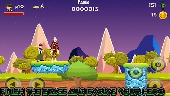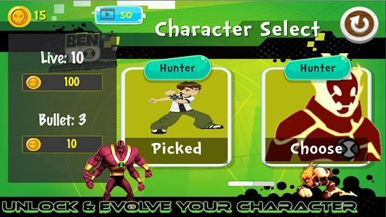 Bens can evolve himself become 10 Aliens Character, with 10 Aliens character evolve beat the enemy and save the world !