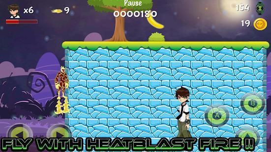 Run and walk on the wall, Shoot with Heatblast Fire, Hit, jump and Fly using Heatblast fire, climb on obstacles and evade from enemies who in every possible way will prevent on your way.
