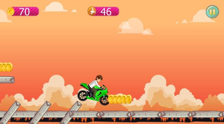 Ben Bike adventure is one of the greatest games ever made from Ben11 . it's just simple and amazing game, all you have to do is tapping to race over the hurdles on the road collect coins to get more lives and get your best score. adventure of ben bike Racing, world adventure, set off at full speed with ben bike! entire coins, run time has come.