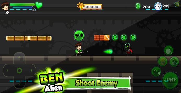 To complete the platformer ben games Super ben's 10(ten) will jump and run up to speed on many obstacles, fight and shoot against fire fly ninjas, the bats, reboot, ten, humungousaur, tennyson, skeletons, toys, kevin 11, Sharks, force omnitrix and Omniverse many other monsters