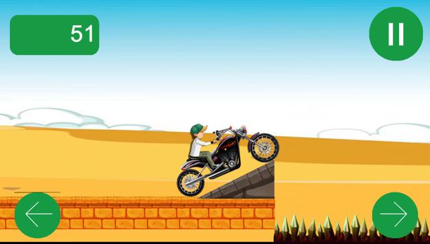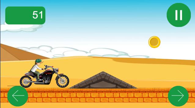 Ben Moto Race make you fun , it contains a lot of obstacl you must avoid it , it's easy to play. you will found in your road a lot of hills ,uphill racing bad hills , you must help ben to get 10 gold coins , and achieve high score be careful from the bad hills .