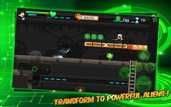 Ben alien is on a dangerous mission to take down and beat down his enemies in this cool platformer. Help the kid to use his power by transforming into different super alien to kill the bad guys. You need to collect as many gadgets as you can to finish the level. The enemy boss is a very strong monster, you will also need to collect power ups during the fight that you can use to upgrade your power and transform into more powerful super alien.