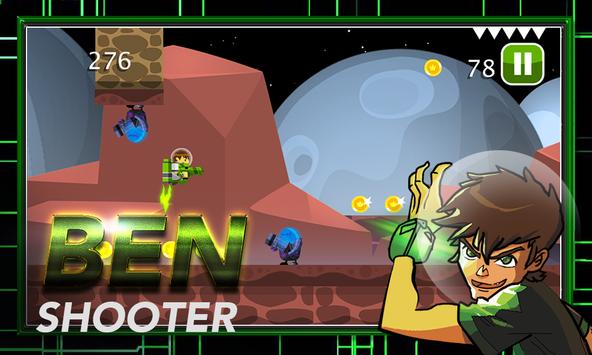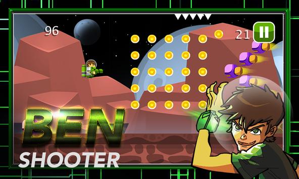 To complete the platformer game Super ben's 10(ten) will jump and run on many obstacles, fight and shoot against fire fly ninjas, the bats, benwolf, ten, Heatblast, humungousaur, skeletons, Sharks, omnitrix stinkfly and many other monsters