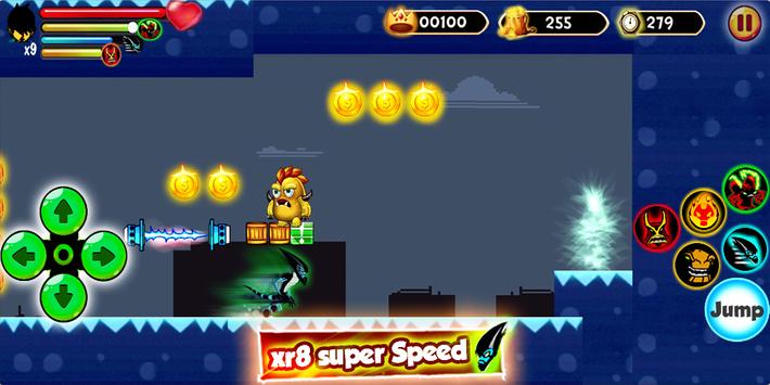 Each characters has special skills such as transform into aliens force attack to inscrease speed and attack damage...