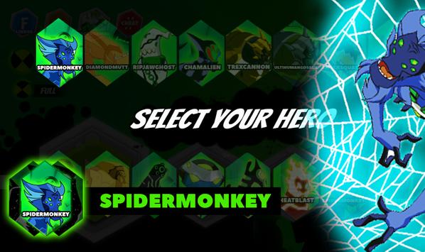 Lets fight together with hero ben in adventure battle arcade of ultimate alien Spider Monkey omniverse.
