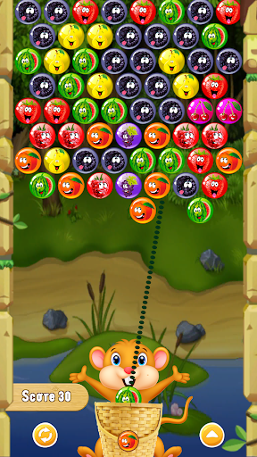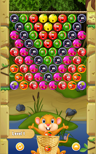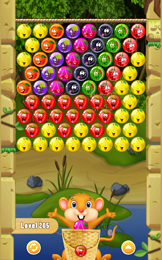 Shoot down the berries on the principle of three in a row. To do this, you need to form groups of 8 types of berries, and then shoot where there are most berries.