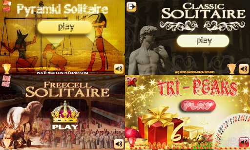 This collection includes 4 different Solitaire game : Pyramid, Klondike, Freecell, Tripeaks