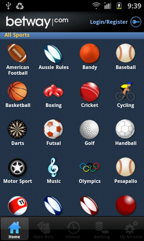 Mobile official App of Betway.com! Start betting now from mobile with Betway, bet anytime and anywhere! Bet on sport with Betway, the best bookmaker and sportsbook in the world! With Betway.com Mobile app you can bet on: Football, tennis, basket, rugby, horse racing, world cup fifa brasil 2014 and much more... Get now your free Betway mobile official app and start betting on sport with your mobile devices!