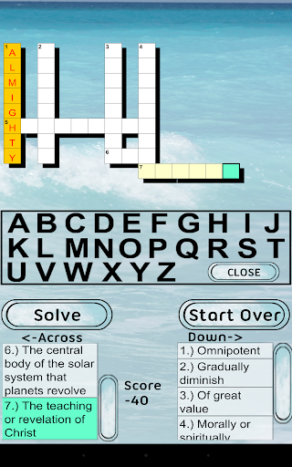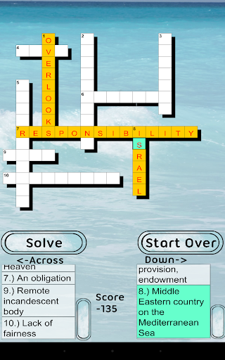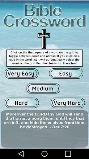 Fun crossword puzzle game with many levels. Choose from very easy to very hard. Ad supported. Prayerfully built.