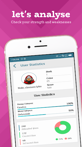 Discover your peculiar area of strength and weaknesses along the line with the user statistics metrics.