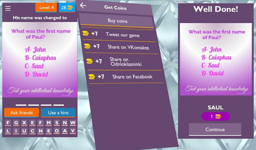 3. You can ask your friends for help on messenger (s) by sharing the game ( Bible Quiz) with them.