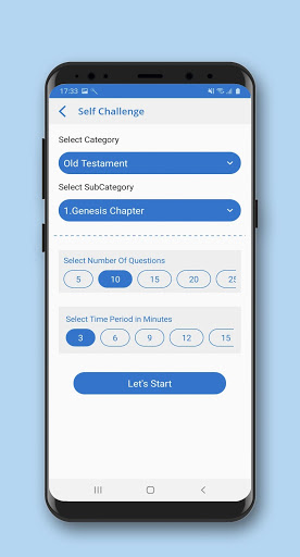 3.Self Examination: Whole Bible Books Wise Quiz Program, You can Play any book of the bible by selecting category and numbers of Questions in Book and select time and start the exam