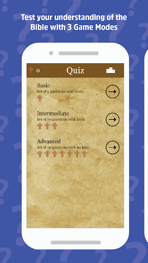 - Test your knowledge on the Bible in the challenge mode. Basic challenge has a set of 3 questions while advanced challenge has a set of 5 questions.
