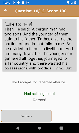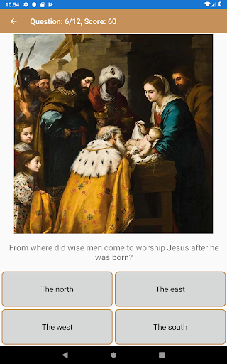Includes questions both from the Old Testament and New Testament (you can choose to use only one of them in the settings).