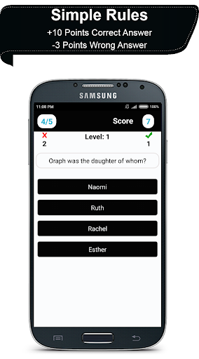 Having carefully selected bible questions, this Bible trivia game will inspire you to play more and more, whetting your curiosity and helping you to improve your knowledge about Bible's stories and peculiarities. You learn in a fun and smart way.