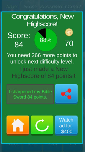 Every correct answer brings you one step closer to unlocking the next level. Score bonuses in the Shop will get you to the next level faster.