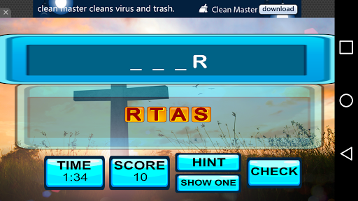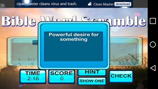 If you get stuck, click on "hint" for a definition of the word; or click on "show one" to reveal one letter in the correct position.