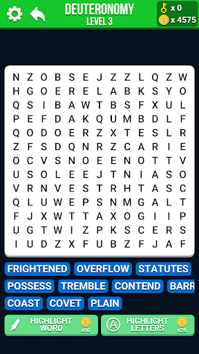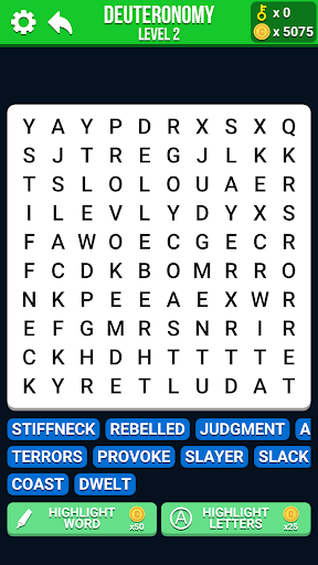 The goal of this Bible App Game - Bible Word Search is pretty simple. You have to find the words from the list which will be hidden in the grid with other random letters. They may be arranged in vertical, horizontal or diagonal lines. You may also find the words arranged in reverse order.