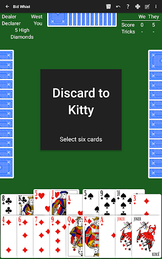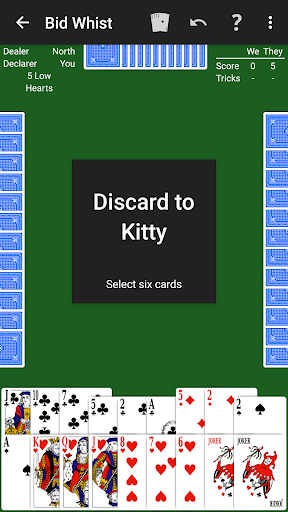 • Kitty size. Choose the size of the kitty: 6 cards, 5 cards, 4 cards, or no cards.